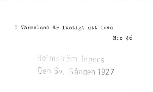//// 1 Värmeland är lustigt att leva //// N: o 46 //// Ho m orn-Hinoers //// ljen Sv. Sången 192 7 ////