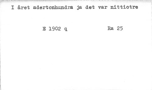 //// året adertonhundra ja det var nittiotre //// E 1902 q Ra 25 ////