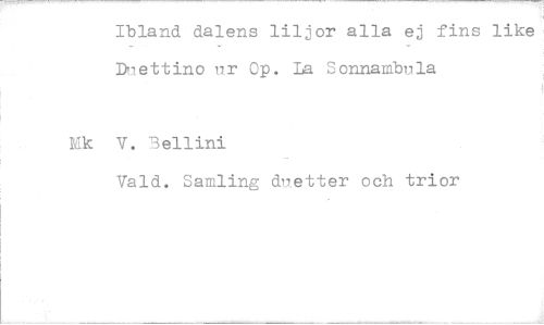 //// Ibland dalens liljor alla ej fins like, Drettino ur Op. La Sonnambula //// TIk V. 3ellini //// Vald. Samling duetter och trior ////