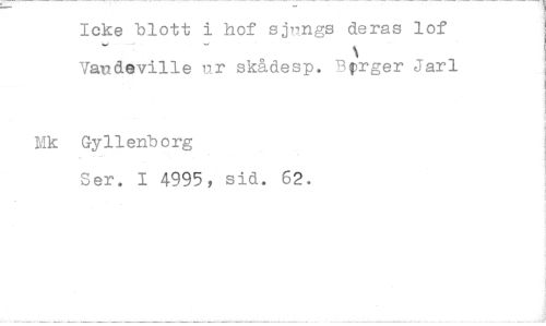 //// Icke blott i hof sjungs deras lof Vaudeville ur skådesp. Bprger Jarl //// Mk Gyllenborg //// Ser. 1 4995, sid. 62. ////