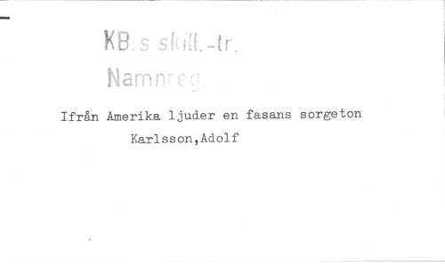 //// Ifrån Amerika ljuder en fasans sorgeton Karlsson,Adolf ////
