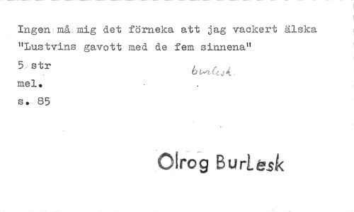 //// Ingen må mig det förneka att jag vackert älska "Lustvins gavott med de fem sinnena" //// 5 str mel. //// s. 85 //// Olrog Buritsk ////