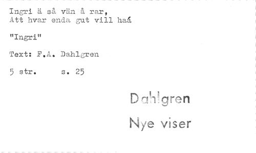 //// Ingri ä så vän å rar, //// Att hvar enda gut vill haå //// "Ingri" //// Text: F.A. Dahlgren 5 str. s. 25 //// DmYgren //// 4.% er ////