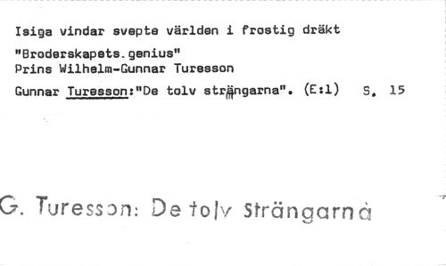 //// Isiga vindar svepte världen i frostig dräkt //// "Broderskapets.genius" //// Prins Wilhelm-Gunnar Turesson //// Gunnar Turesson:"De tolv strOgarna". (E:1) S. 15 //// G. Turesspn: De tolv Strängarnä ////