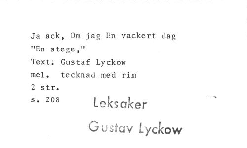 //// Ja ack, Om jag En vackert dag "En stege," //// Text. Gustaf Lyckow //// mel. tecknad med rim //// 2 str. //// s. 208 Leksaker //// Gustav Lyckow ////