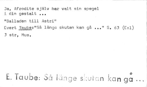 //// Ja, Afrodite själv har valt sin spegel i din gestalt ... //// "Balladen till Astri" //// Evert Taube:"Så länge skutan kan gå ..." S. 63 (E:1) 3 str, Mus. //// 4> //// E. Taube: Så' länge s ;uf.-,n kan ga ////