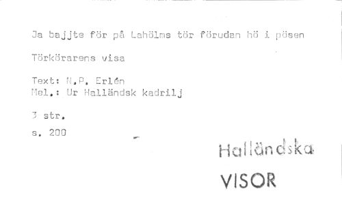//// Ja bajjte för på Lahölms tör förudan hö i pösen Törkörarens visa //// Text: N.P. Erlån //// Mol.: Ur Halländsk kadrilj //// 3 str. s, 200 //// Hatt6ndA4:1 //// VISOR ////