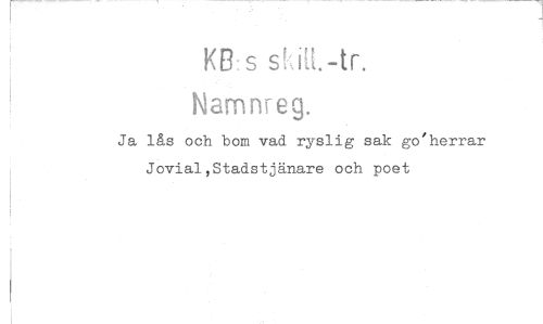 //// KE3-s //// Namnreg. //// Ja lås och bom vad ryslig sak go'herrar Jovial,Stadstjänare och poet ////