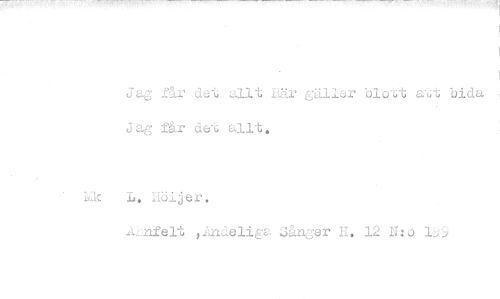 //// Jag får det allt här gäller blott att bida Jag får det allt. //// L. höljer. //// ..t.Lnfelt ,Andeliga Sånger H. 12 11:o ////