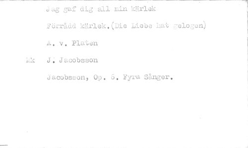 //// TT- //// Jag gaf dig all min kärlek //// Förrådd kärlek.(Die Liebe hat :_7elogen) A. v. Platen //// 14k J. Jacobsson //// Jacobsson, Op. 6. Fyra Sånger. ////