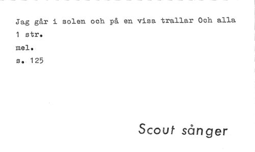//// Jag går i solen och på en visa trallar Och alla 1 str. //// mel. //// s. 125 //// Scout sånger ////