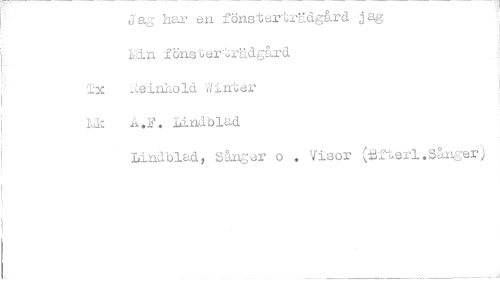 //// Jag har en fönstertrgAgård jag. fönaterträdgård //// lx ieinhold 'slinter //// A.F. Lindblad //// Lindblad, Sånger o Visor (efterl.Sånger) ////