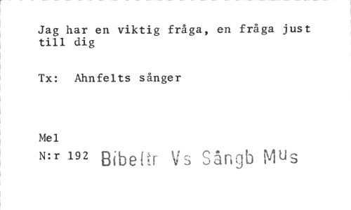 //// Jag har en viktig fråga, en fråga just till dig //// Tx: Ahnfelts sånger //// Mel //// N:r 192 Bibeltr V Sångb Mus ////