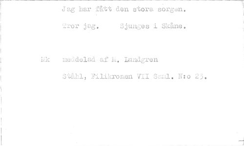 //// Jag har fått den stora sorgen. //// 2.ror jag, Sjunges i Skåne. //// kk meddelad af L, Lundgren //// Ståhl, Filikromen VII Saml, N:o ////