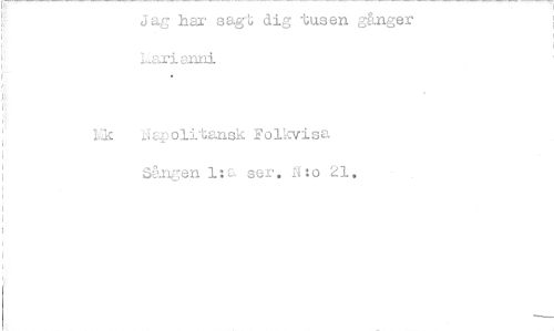 //// Jag har sagt dig tusen gånger Larianni //// Lik Ikpolitansk Folkvisa Sången I:a ser. N:o 21. ////