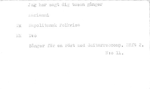 //// Jag har sagt dig tusen gånger i„larianni //// 2x Napolitansk f olkvisa //// Lic D:o //// Sånger för en röst med Guitarraccomp. liKft 2. //// N : o 11. ////