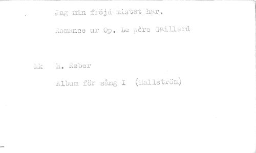 //// Sg min fröjd mistat siar. Aomance ur Op . Le pre Gaillard //// h. _Aeber //// Album för sång I ( lallströ4 ////