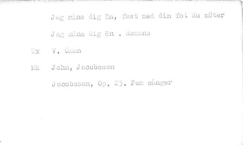 //// Jag mins dig Un, fast med din fot du möter Jag lains dig än . Romans //// V. Oman //// Mk John, Jacobsson //// Jacobsson, Op. 23. Fem sånger ////