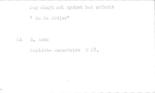 //// jag mångt och mycket har erfarit " Om du dröjer", //// hk B. sens //// Kuplett- .'tepertoire IIa. ////