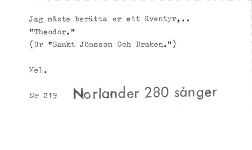 //// Jag måste berätta er ett äventyr,.. "Theodor." //// (Ur "Sankt Jönsson Och Draken.") //// Mel. //// Nr 219 Norlander 280 sånger ////