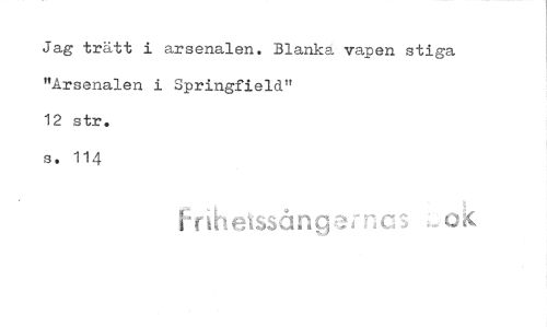 //// Jag trätt i arsenalen. Blanka vapen stiga "Arsenalen i Springfield" //// 12 str. //// s. 114 //// f r h eisså n ////