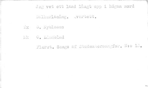 //// 3 //// jac vet ett land långt upp i högan nord Dalkarlasång. var Get. //// Tx G. Nyblaeus //// kk 0. Lindblad //// Ylerst. Sange af Studenteroangfor. U:o 13. ////