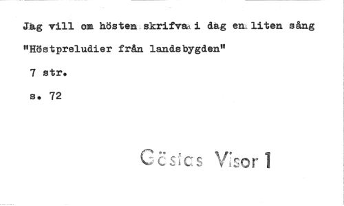 //// Jag vill am hösten skrif~i dag eni liten sång "Höstpreludier från landsbygden" //// 7 str. //// s. 72 //// ‘.:.; C S C r ////