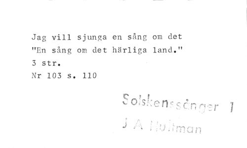 //// Jag vill sjunga en sång om det "En sång om det härliga land." 3 str. //// Nr 103 s. 110 //// Ec:n :r //// n ////