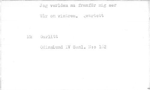 //// Jag veriden nu framför mig ser //// Vår om vinren. .,-szarts'ut //// lik Gurli tt //// Odinaand 1V Saml. U:o 1G2 ////