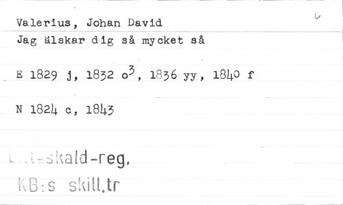 //// Valerius, Johan David //// Jag älskar dig så mycket så //// E 1829 j, 1832 03, 1836 yy, 1840 f N 1824 c, 1843 //// -sAatd-reg, //// [,13:s skitt.tr ////