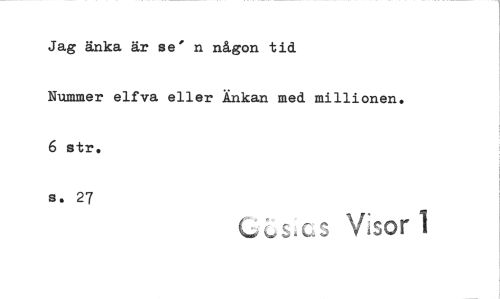 //// Jag änka är se' n någon tid //// Nummer elfva eller Änkan med millionen. 6 str. //// s. 27 //// es Visor 1 ////