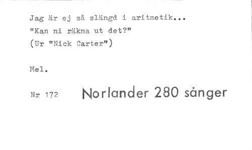 //// Jag är ej så slängd i aritmetik... "Kan ni räkna ut det?" //// (Ur "Nick Carter") //// Mel. //// Nr 172 Norlander 280 sånger ////