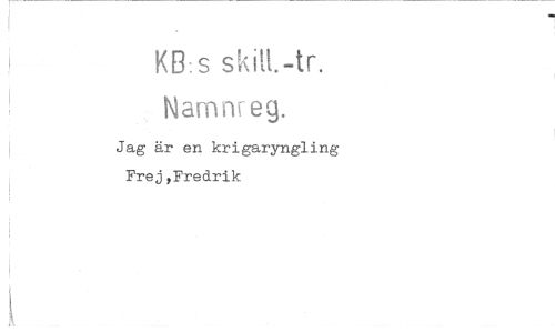//// KB: s skilt.-tr. //// Namnreg. //// Jag är en krigaryngling Frej,Fredrik ////