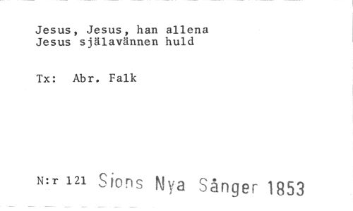 //// Jesus, Jesus, han allena Jesus själavännen huld //// Tx: Abr. Falk //// N:r 121 Sions Nya Sånger 1853 ////