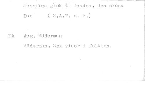 //// Jungfrun gick åt lunden, den sköna D:o ( S.A.T. o. B.) //// Mk Arg. Söderman //// Söderman, Sex visor i folkton. ////