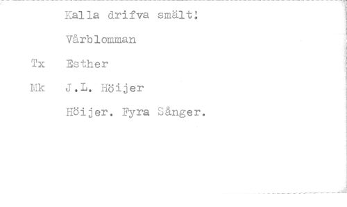 //// Kalla drifva smält! Vårblomman //// Tx Esther //// Mk J.L. Höijer //// Höijer. Fyra Sånger. ////