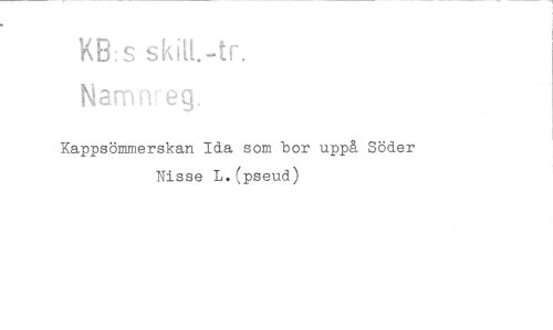 //// s skitt.-tr. Nar-i P,- eg. //// Kappsömmerskan Ida som bor uppå Söder Nisse L.(pseud) ////