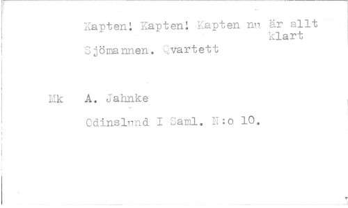 //// Kapten! Kapten! Kapten nto är allt //// klart //// jömannen. (vantett //// Tik A. Jahnke //// Cdinslund I Saml. 11:o 10. ////