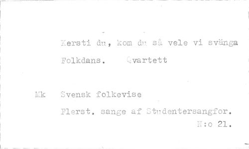 //// Zersti du, kom dr så vele vi svänga Folkdans. vart ett //// Mk Svensk folkevise //// Flerst. sange af Stridentersangfor. //// N:o 21. ////