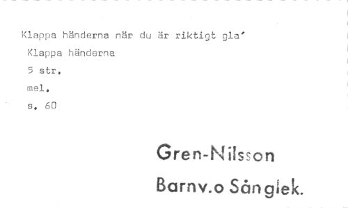 //// Klappa händerna när du är riktigt gla' Klappa händerna //// 5 str. //// mel. //// s. 60 //// Gren-Nilson //// Barnv.o Sånglek. ////