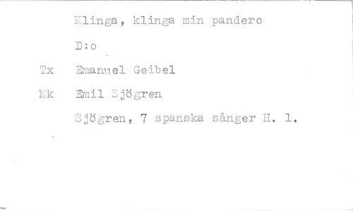 //// Klinga, klinga min pandero D:o //// Tx Emanuel Geibel //// Mk Emil Sjögren //// Sjögren, 7 spanska sånger H. 1. ////