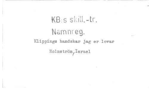 //// KB:s //// Namnreg. //// Klippings handskar jag er lovar Holmström Israel ////