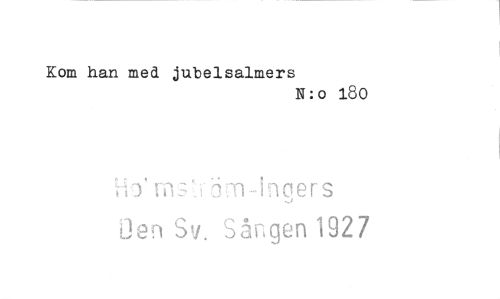 //// Kom han med jubelsalmers //// N:o 180 //// ,3 71 --boers //// Den Sv. Såggen 1927 ////