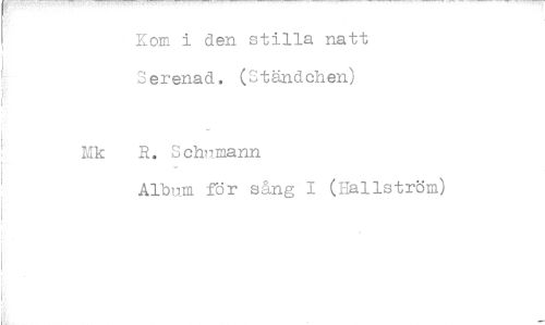 //// Kom i den stilla natt Serenad. (Ständchen) //// 1,1k R. Schumann //// Album för sång 1 (Hallström) ////