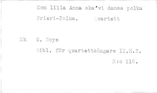 //// Kom lilla Anna ska'vi dansa polka Frieri-Polka, :vartett //// lik G. 3oye //// för qvartettsångare 11.H.2. //// 11:0 116. ////