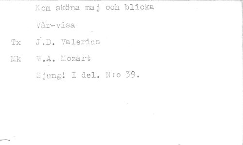 //// Kom sköna maj och blicka Vår-visa //// Tx J.D. Valerius //// Ik W.A. Llozart //// Sjung! 1 del. N:o 39. ////