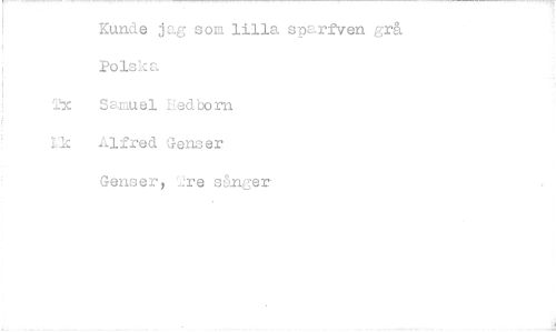 //// Kunde jag som lilla sparfeen grå. Polska //// It( Samuel Liedborn //// I-1: Alfred Genser //// Genser, sgmp:er ////