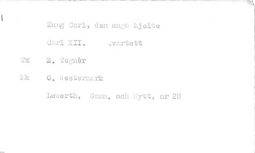 //// Kul- Carl, den unga hjelte Carl XII. ,Aatett //// x B. Tegn6r //// 12k 0. Westermark //// Lewerth, Gamm. och Nytt, ur 28 ////