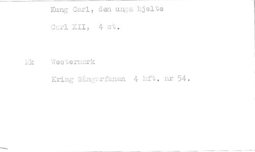 //// Kung Carl, den unga hjelte. Carl XII, 4 st. //// kk Weserm24rk //// Kring Sängarfanan 4 lift. nr 54. ////
