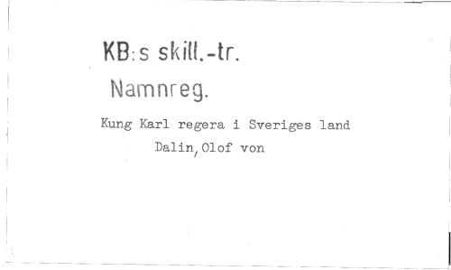 //// KB:s skift-tr. //// Namnreg. //// Kung Karl regera i Sveriges land Dalin Olof von ////